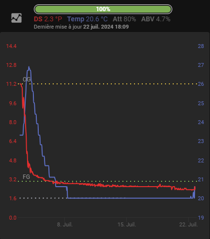 Détails de la recette et de la fermentation sur Brewfather :
