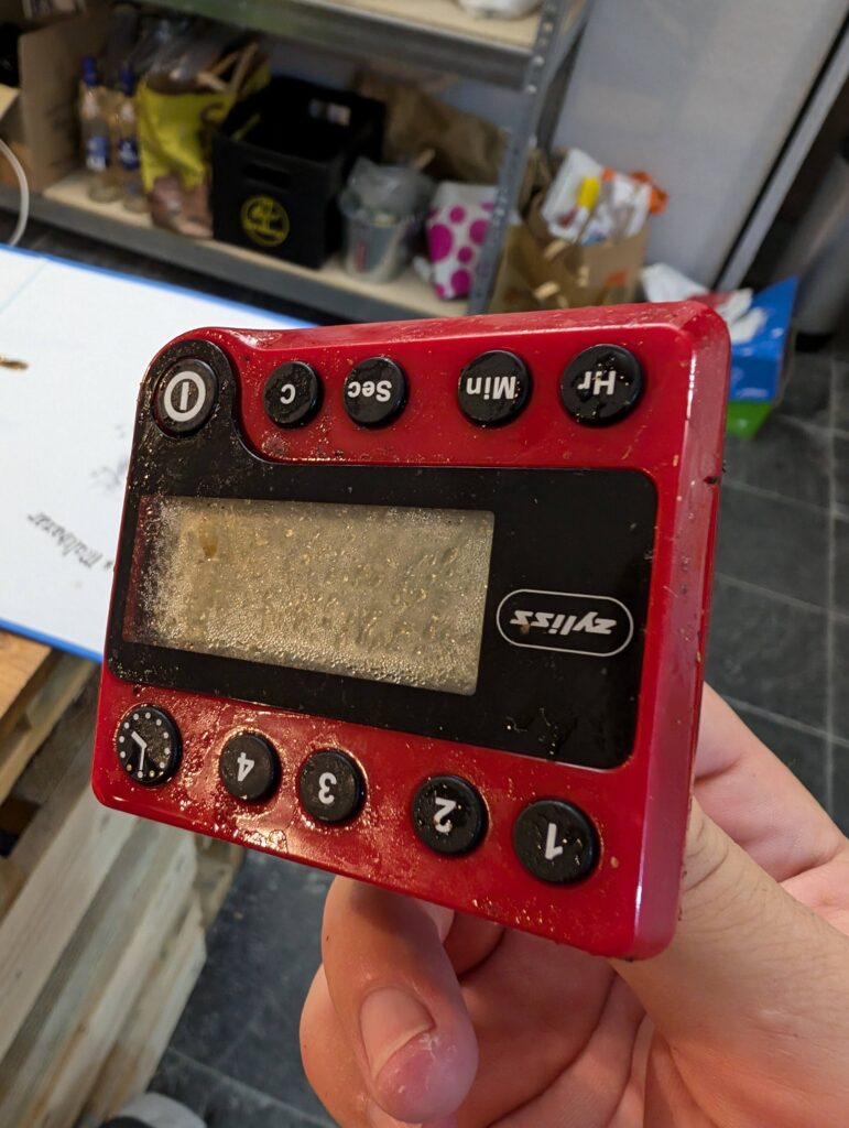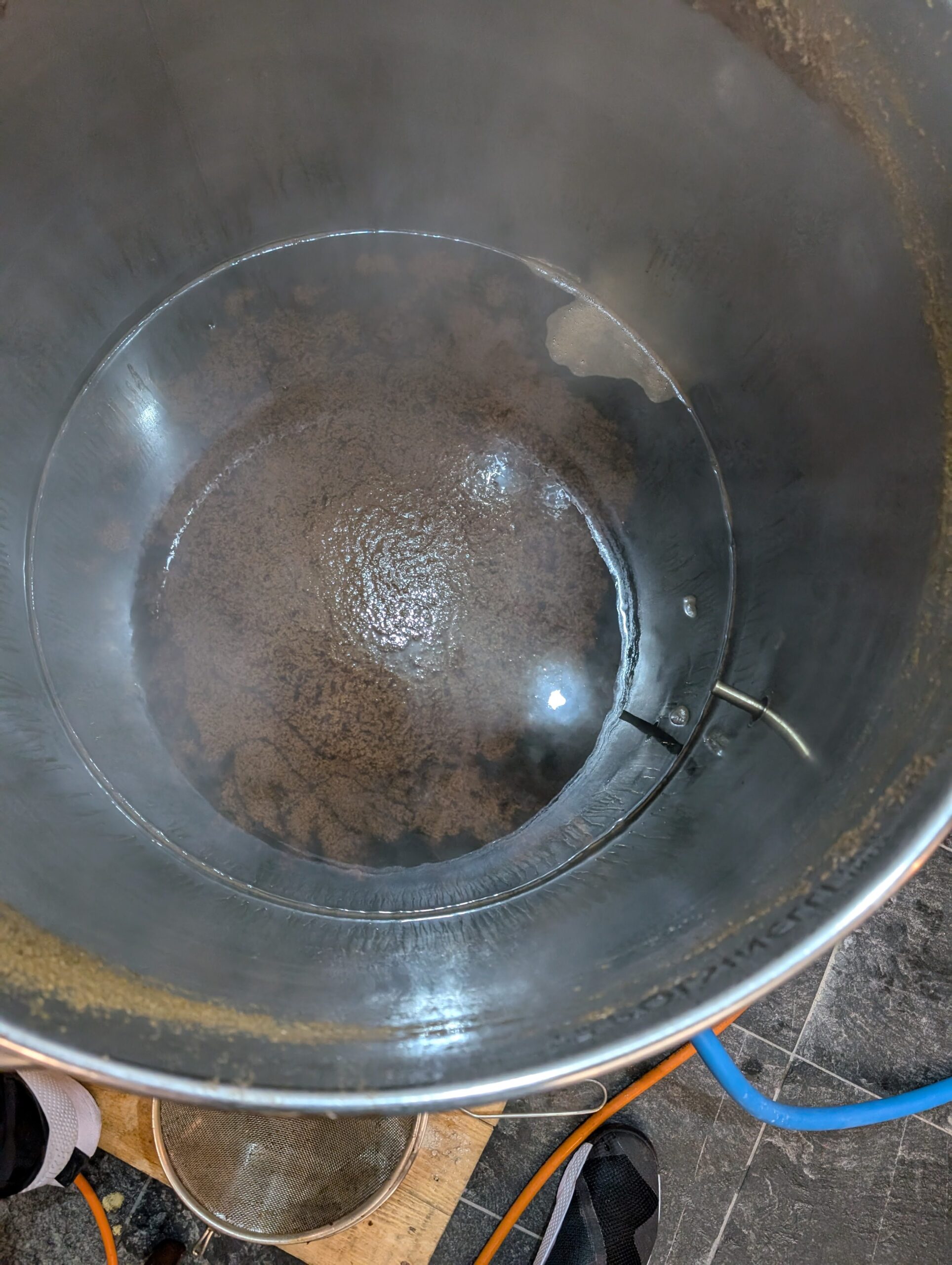 Brassée selon une recette traditionnelle de 1850, cette Porter a été l’occasion de retester le filtre a houblons, ce qui s’est de nouveau montré peu concluant. Ce brassin contient aussi un ingrédient surprenant, durant la phase d’ébullition le moult a été aromatisé au « minuteur Zyliss rouge », la pêche en eaux troubles et noirs a été compliquée mais on a fini par le sortir de la cuve !